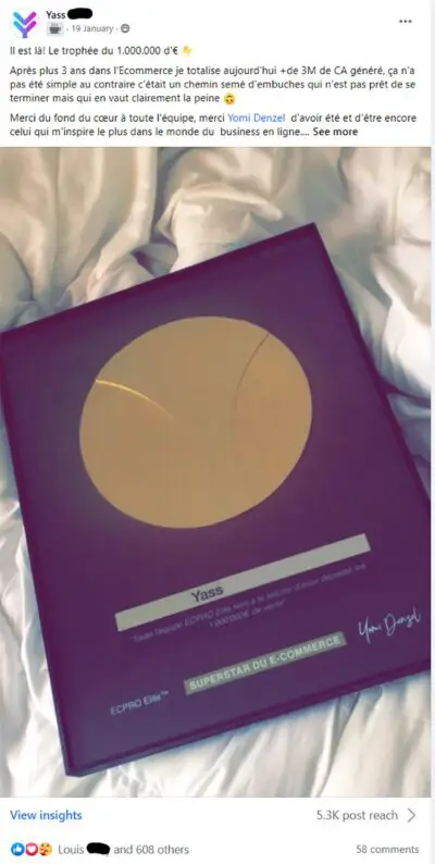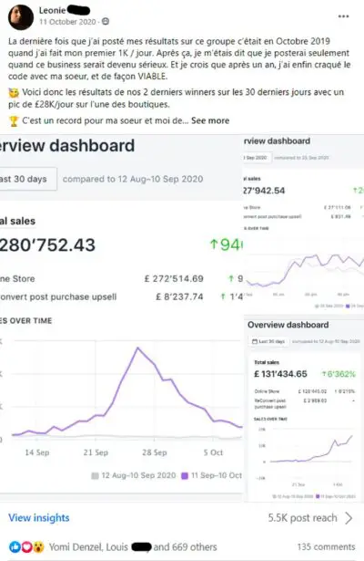 Avec plusieurs centaines de témoignages vérifiés et un chiffre d’affaires généré par ses membres de plus de 150’000’000€, la formation comprend 5 à 10x plus de résultats que n’importe quelle autre formation francophone dans ce domaine.