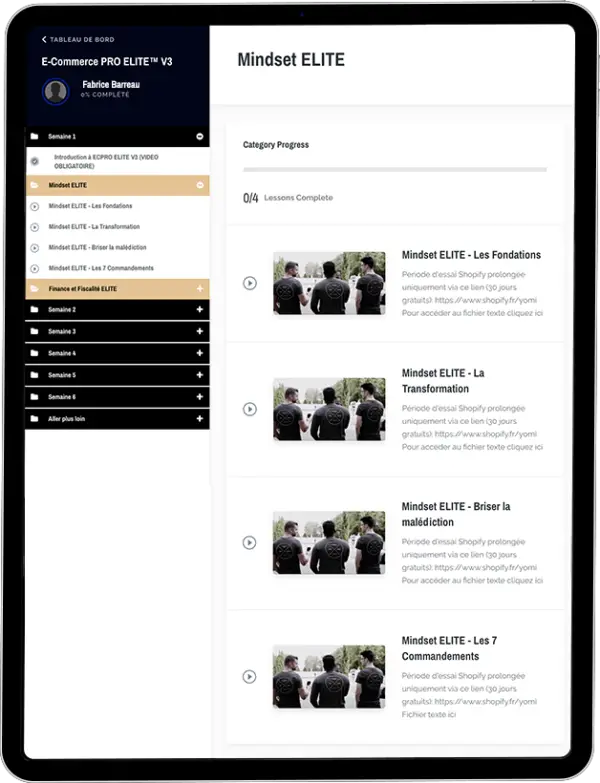 Le seul programme dont vous aurez besoin pour réussir dans le E-Commerce, peu importe votre parcours, vos connaissances et vos compétences de départ. Une marche à suivre étape par étape pour construire votre boutique E-Commerce en partant de zéro, ainsi qu’un accompagnement personnalisé par nos coachs.